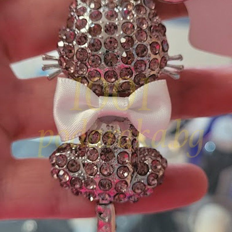Дизайн и изработка: Този красив ключодържател е във формата на коте, украсено с блестящи камъчета, които улавят и отразяват светлината. Малката панделка придава допълнителен чар и кокетност.