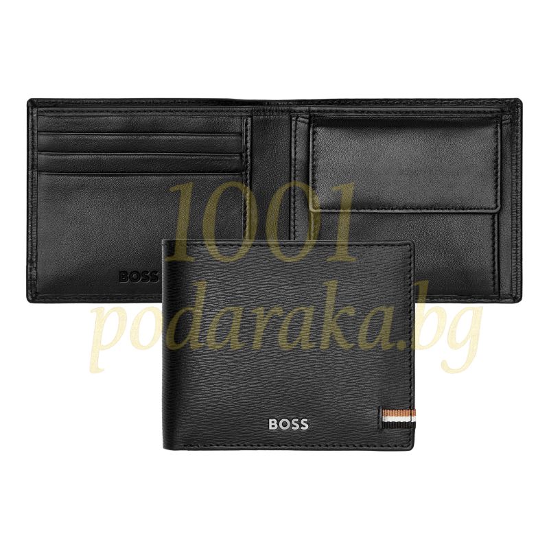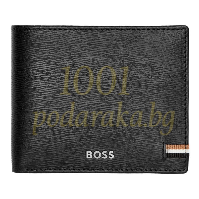Този портфейл е украсен с характерното трицветно текстилно знаме, което е емблематично за серията Iconic на HUGO BOSS, придаващ му неповторим стил. Черният цвят на кожата придава елегантност и универсалност, което го прави перфектен аксесоар за всеки мъж.